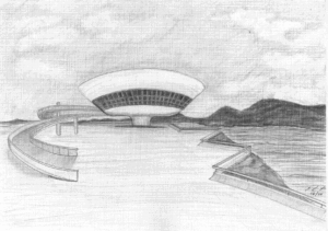 Título Museu de Niterói-RJ, Série Viagens, Grafite s/papel tela, dimensões 297x210mm, 2000